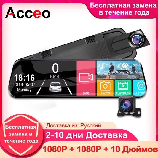 Car Dvr 10 Inch Touch Screen Video Recorder Auto Registrar Stream Mirror Support Rear View Camera...